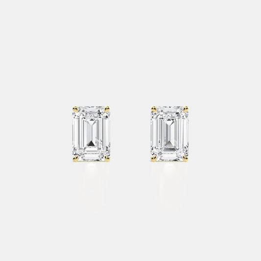 Emerald 4 Prong-Set Lab-Grown Diamond Stud Earrings